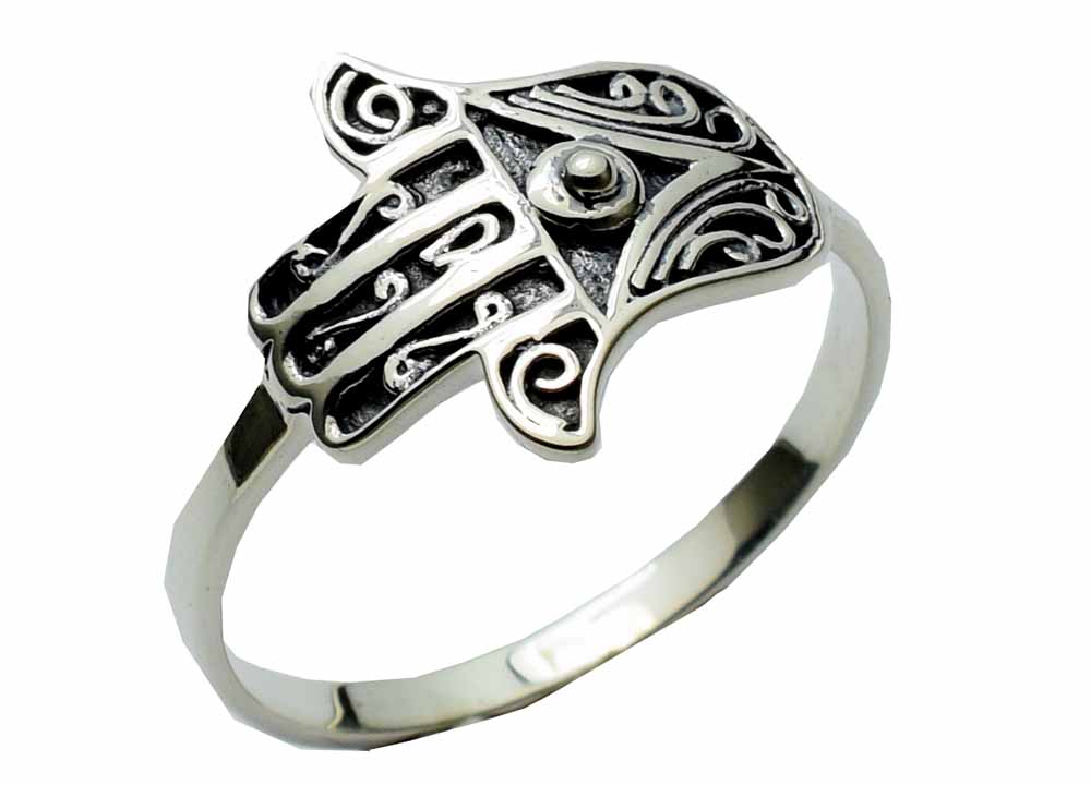 Ring Fatima Hand With Swirly Designs 925 Sterling Silver