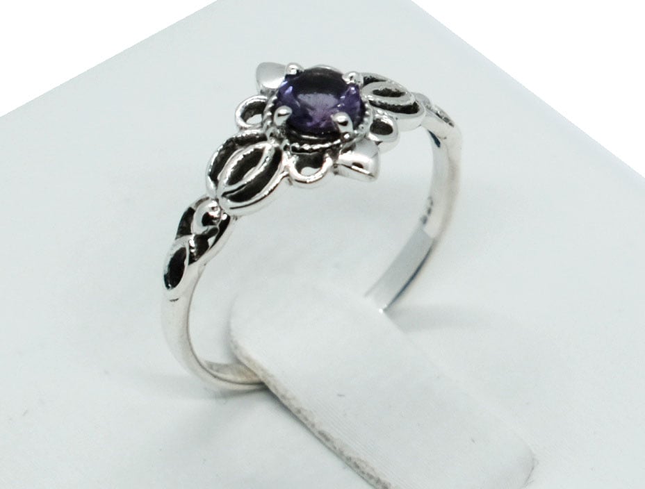 Silver Ring Flower Round Amethyst 925 Sterling Silver