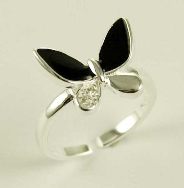 Ring For Children Butterfly Black With CZ Stone 925 Sterling Silver