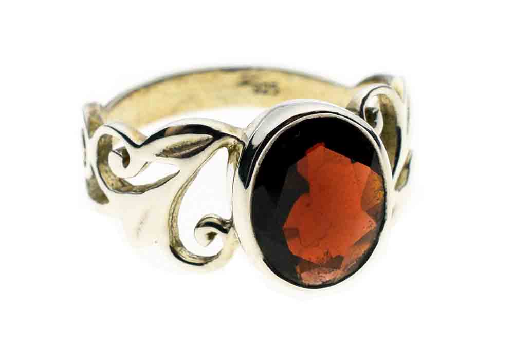 Ring Circle With Floral Cut Sides Garnet Cut Stone 925 Sterling Silver