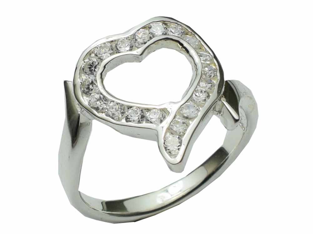 Ring Heart Clear Cubic Zirconia Stones 925 Sterling Silver