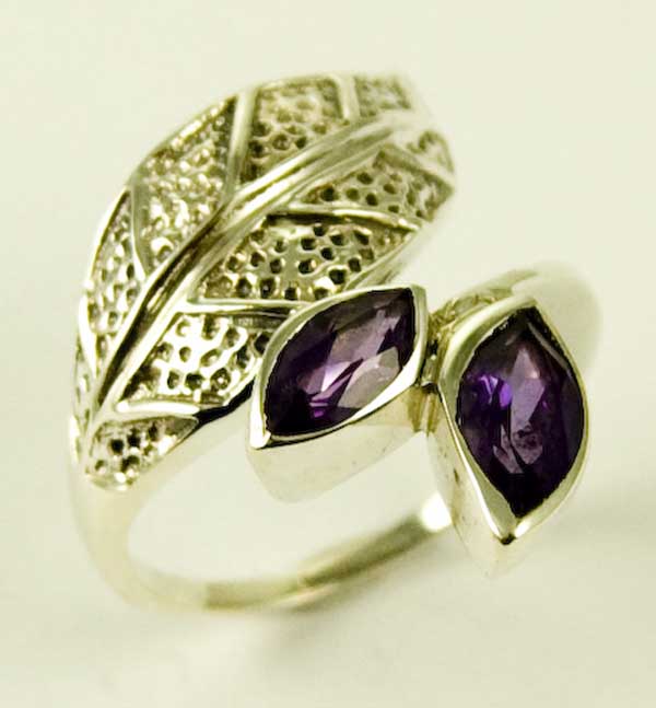Ring Fancy Leaf With Double Amethyst Stone 925 Sterling Silver