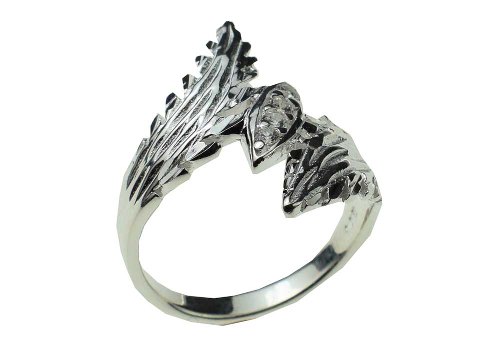 Ring Leaves Diamond Cut With Four Cubic Zirconia Stones 925 Sterling Silver