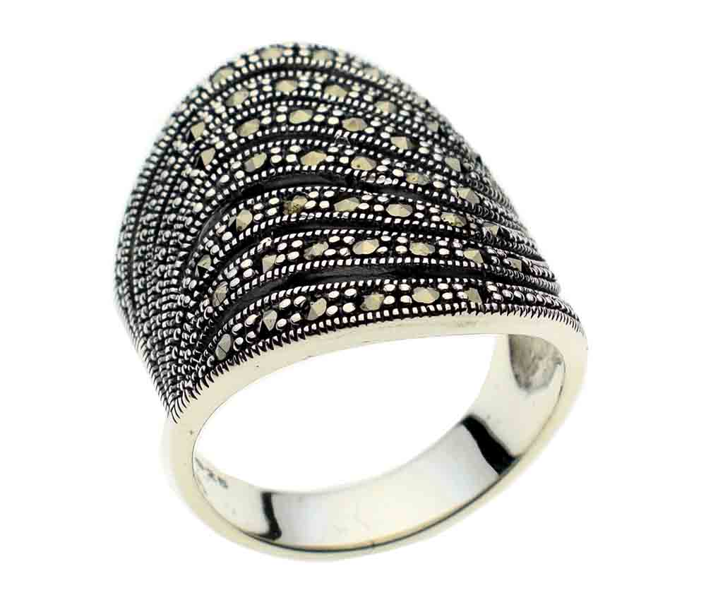 Ring Marcasite 7 Rows Of Stones 925 Sterling Silver