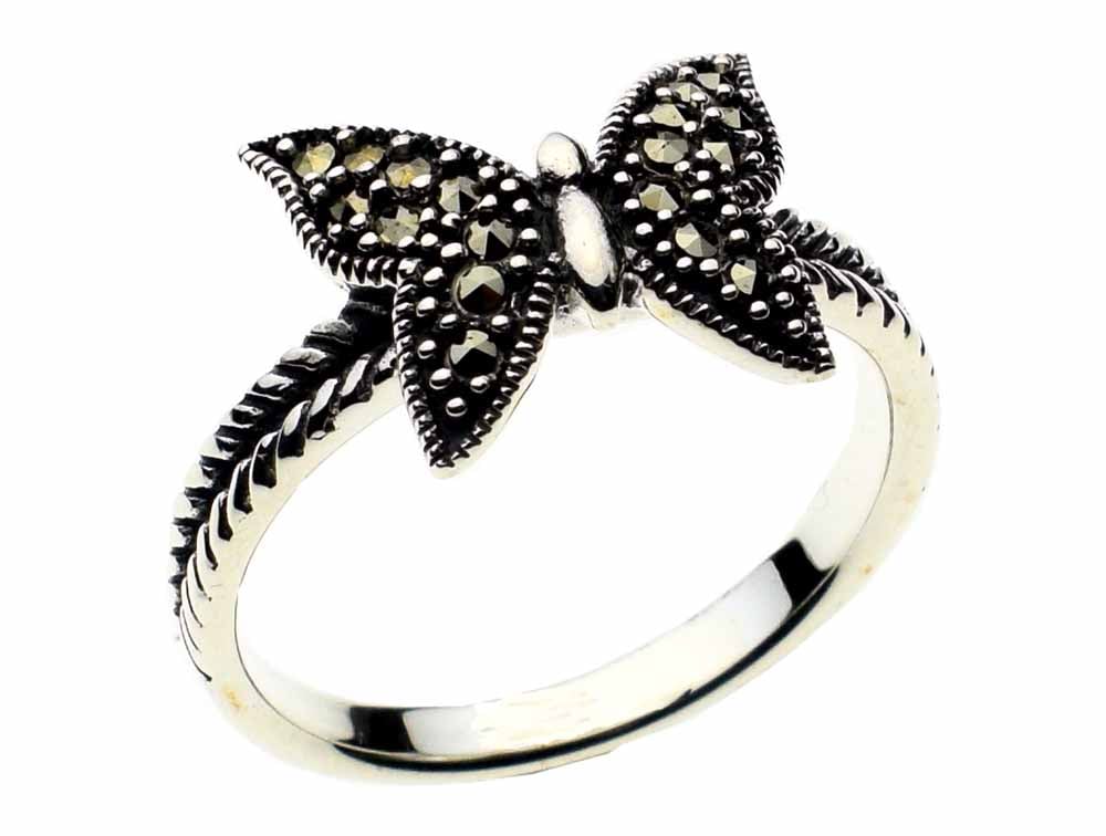 Ring Marcasite Butterfly With Large Wings 925 Sterling Silver