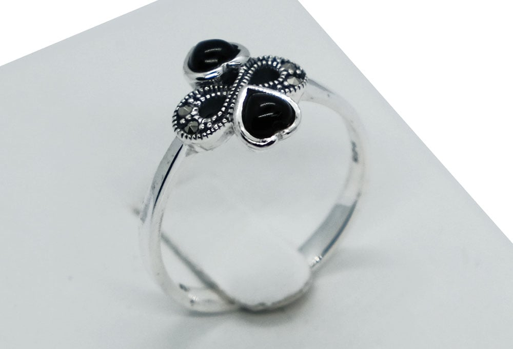 Ring Marcasite Eternity with Onyx Stones With Stones 925 Sterling Silver