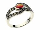 Ring Marcasite Pink Fire Opal Oval Stone With Double Edged Row Of Marcasites 925 Sterling Silver