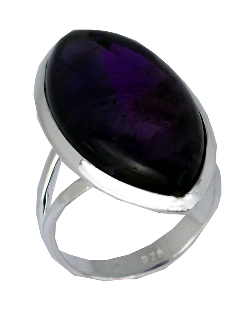 Silver Ring Marquise Amethyst Cabochon Stone Size 15 X 30 mm