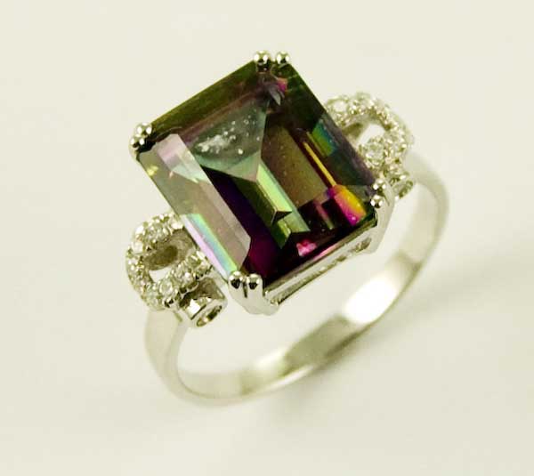 Ring Square Mystic Quartz Stone W10mm 925 Sterling Silver