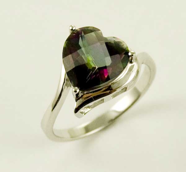 Ring Heart Inset Mystic Quartz Stone W10mm