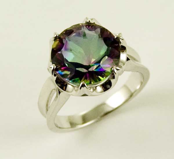 Ring Circle Claw Set Mystic Quartz Stone W11mm 925 Sterling Silver