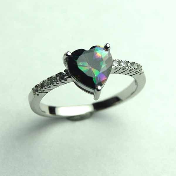 Ring Mystic Quartz Heart Stone With Clear Cubic Zirconias On Edge 925 Sterling Silver