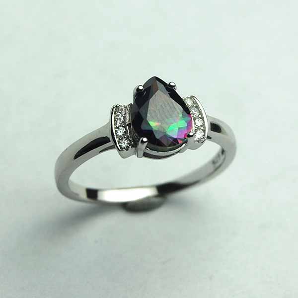 Ring Mystic Quartz Tear Drop Stone With Clear Cubic Zirconias At Sides 925 Sterling Silver