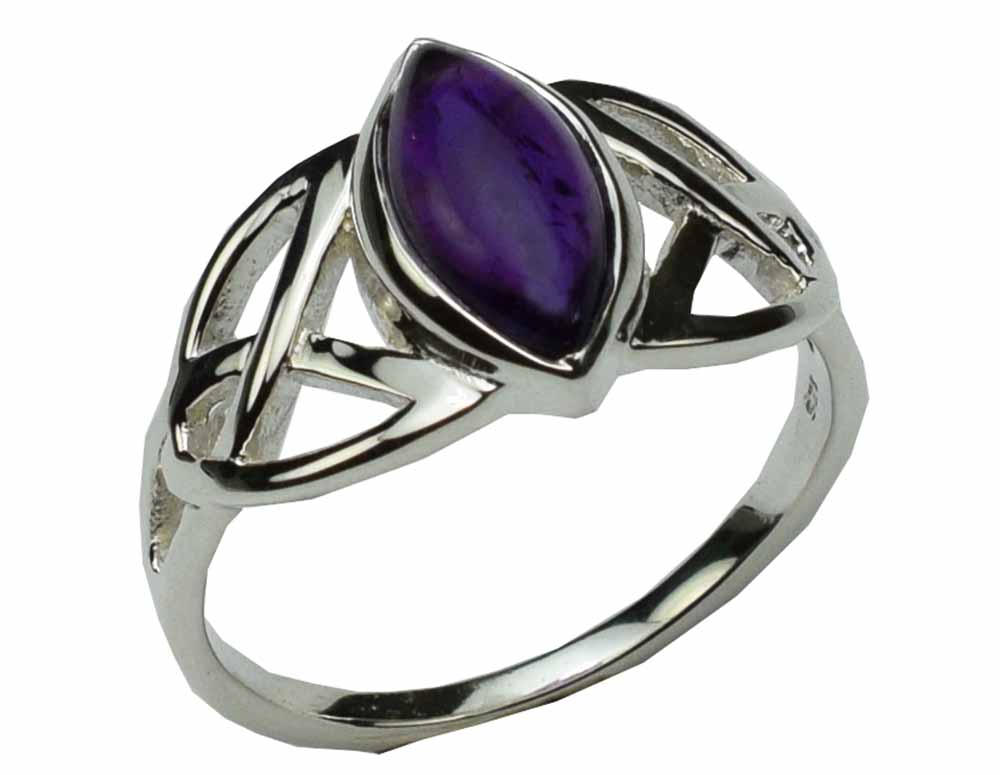 Ring Oval Amethyst Stone And Celtic Style Design 925 Sterling Silver