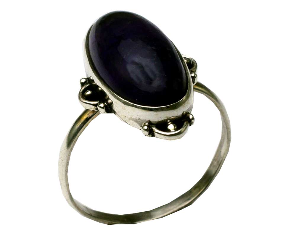 Ring Large Oval Amethyst Stone with Four filigree Details Surrounding the Central Stone 925 Sterling Silver