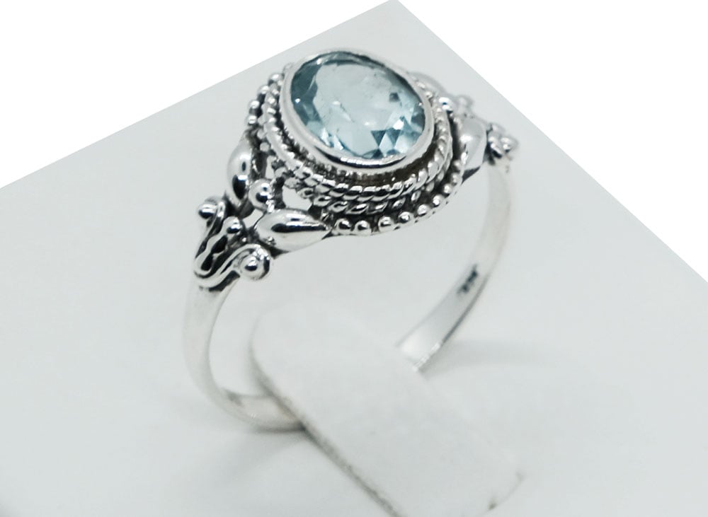 Ring Oval Blue Topaz Stone 925 Sterling Silver