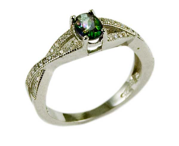 Ring Oval Mystic Quartz Stone With Criss Cross Cubic Zirconia Sides 925 Sterling Silver