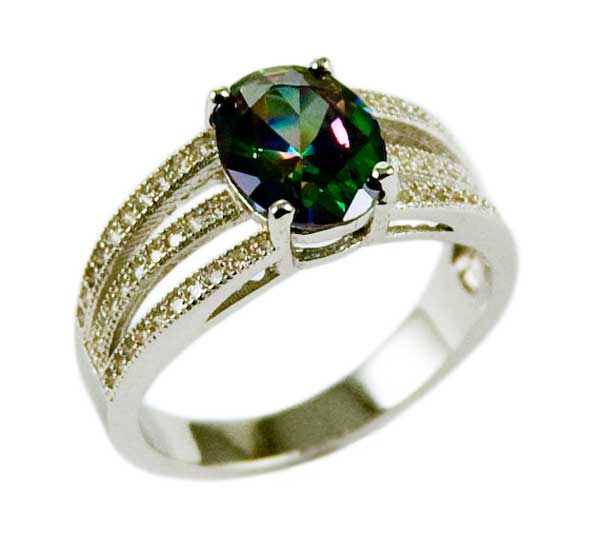 Ring Oval Mystic Quartz Stone With Cubic Zirconia Sides 925 Sterling Silver