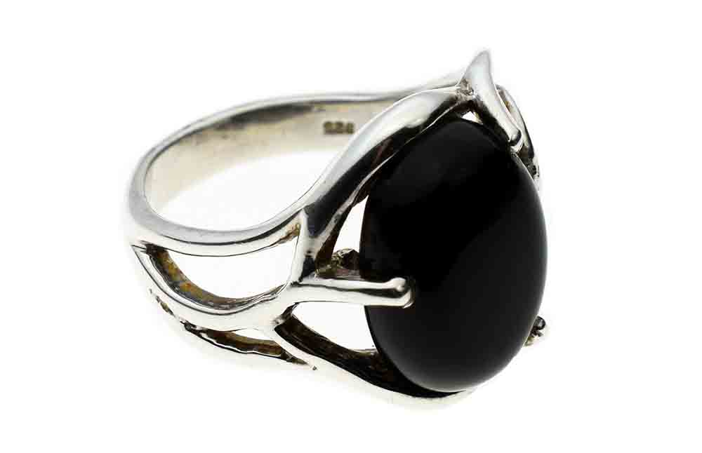 Ring Oval Onyx Cabochon Stone With Fancy Cut Sides 925 Sterling Silver
