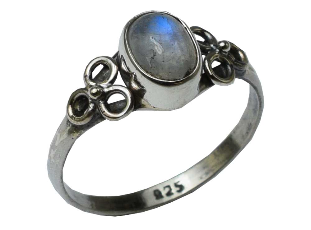 Ring Oval Rainbow Stone with Three Small Circles on Either Side 925 Sterling Silver