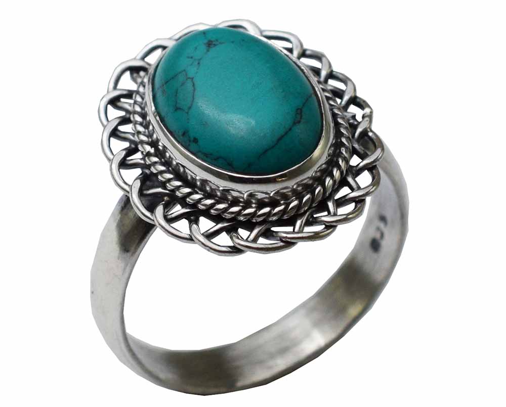 Ring Oval Turquoise Stone 925 Sterling Silver