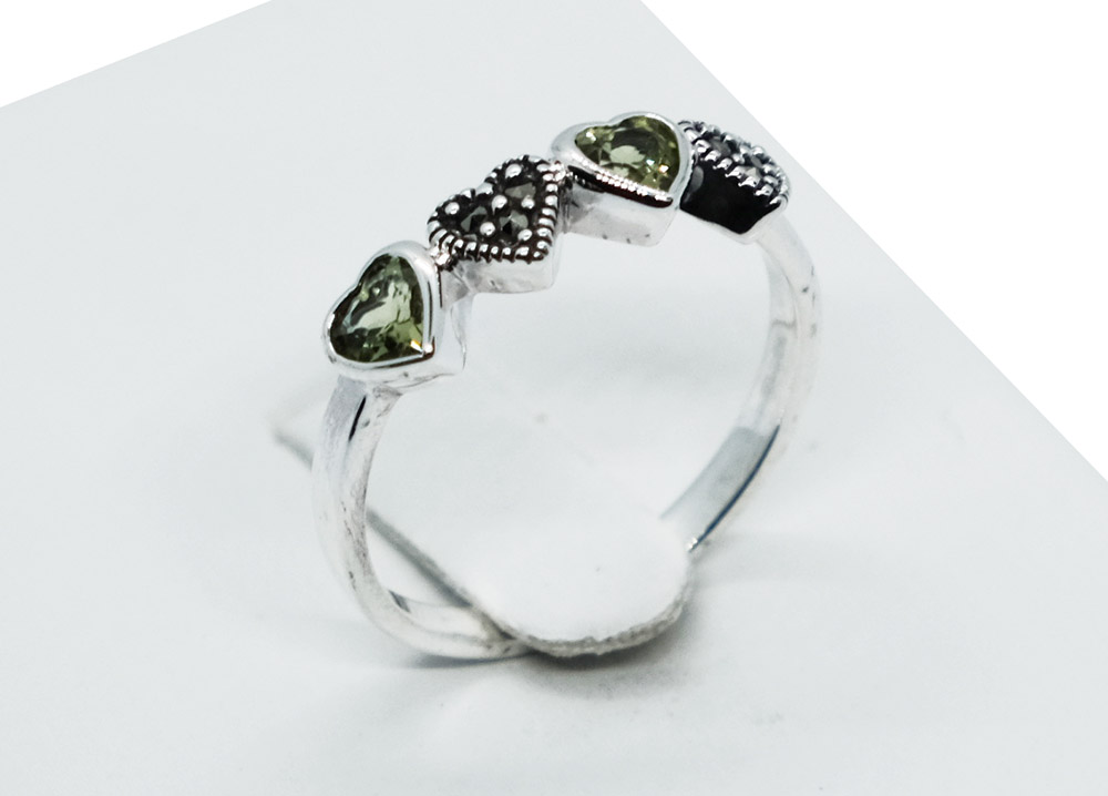 Silver Ring Peridot 4 Hearts