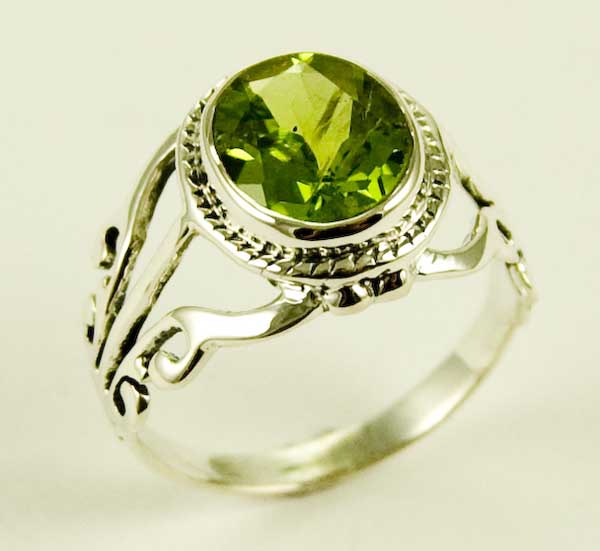Ring Circle With Rope Style Border Cut Sides And Peridot Cut Stone 925 Sterling Silver