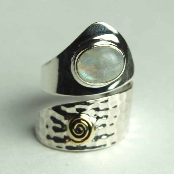 Ring Wide Swirl Design With Rainbow Oval Cab Stone 925 Sterling Silver
