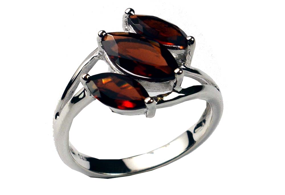 Silver Ring Three Stones in Garnet Colour 925 Sterling Silver