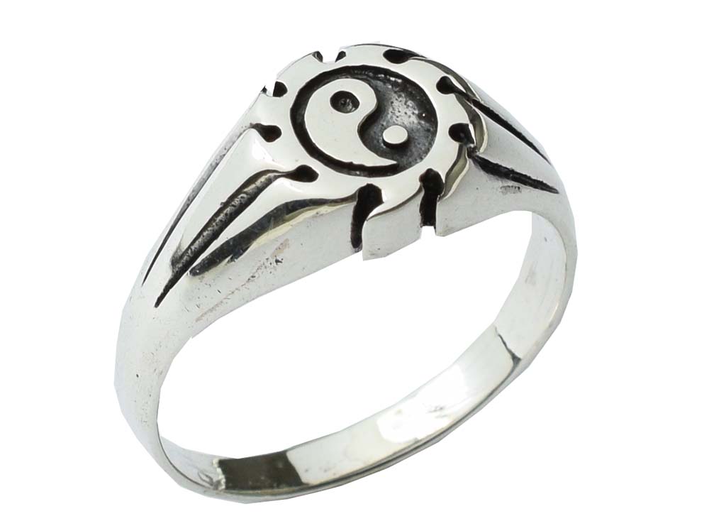 Ring Ying Yang With Lines At The Sides 925 Sterling Silver
