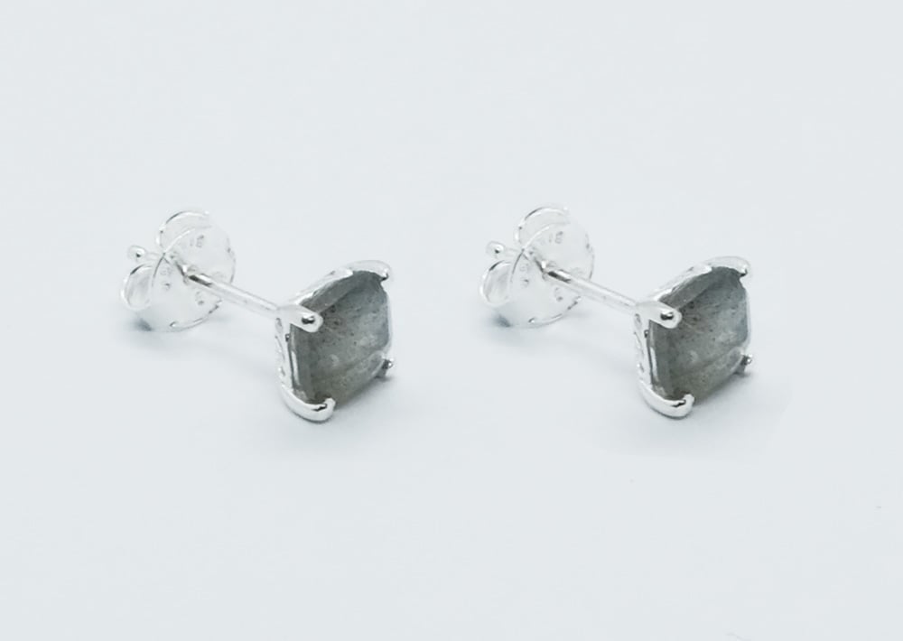 Silver Stud Square Cut Labradorite Claw Set 5X5mm