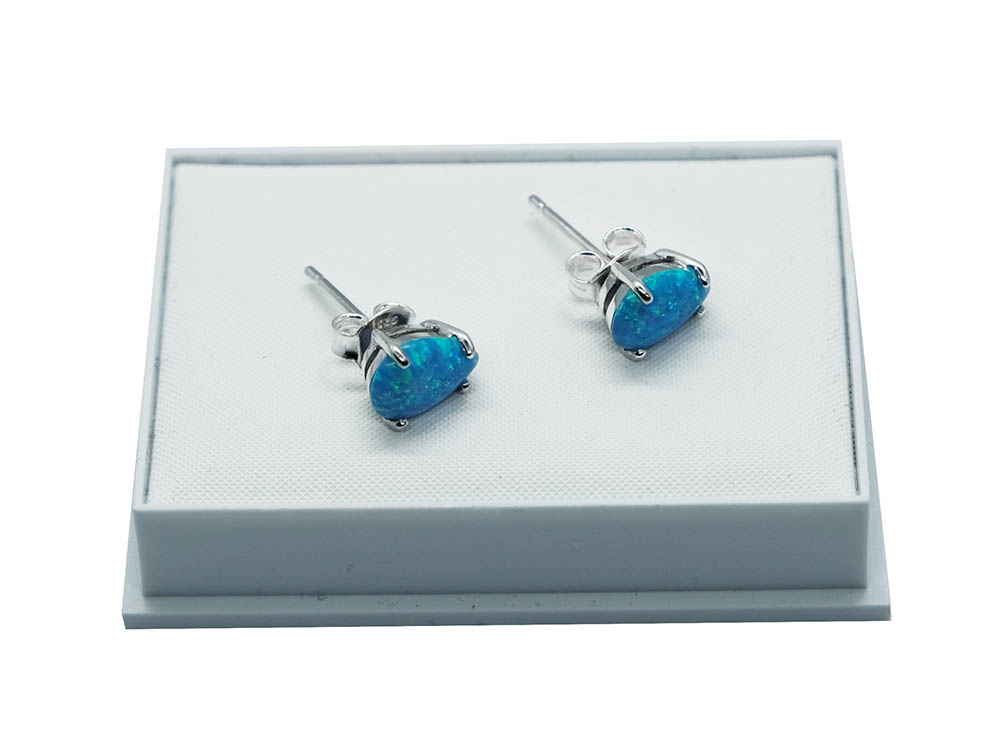 Stud Marcasite Blue Opal Tear Drop Stone Drop 925 Sterling Silver