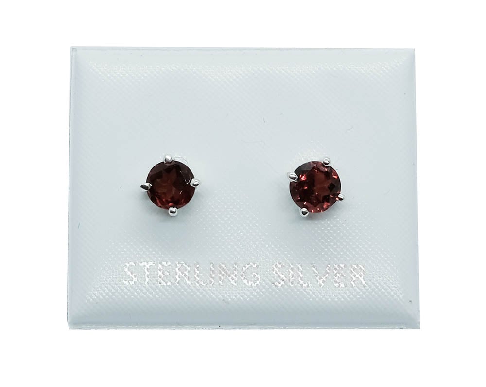 Silver Stud Round Cut Garnet Claw Set 5x5mm