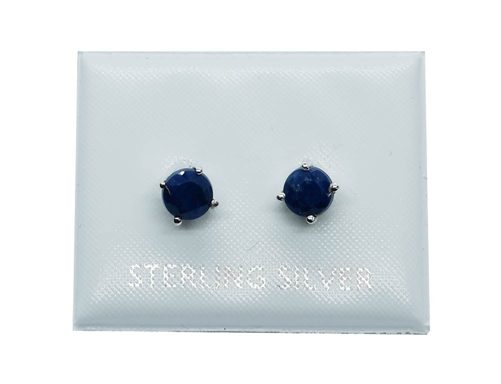 Silver Stud Round Cut Lapis Claw Set 5x5mm