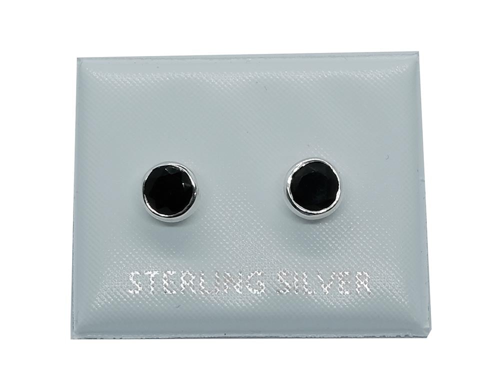 Silver Stud Round Cut Black Onyx 5x5mm