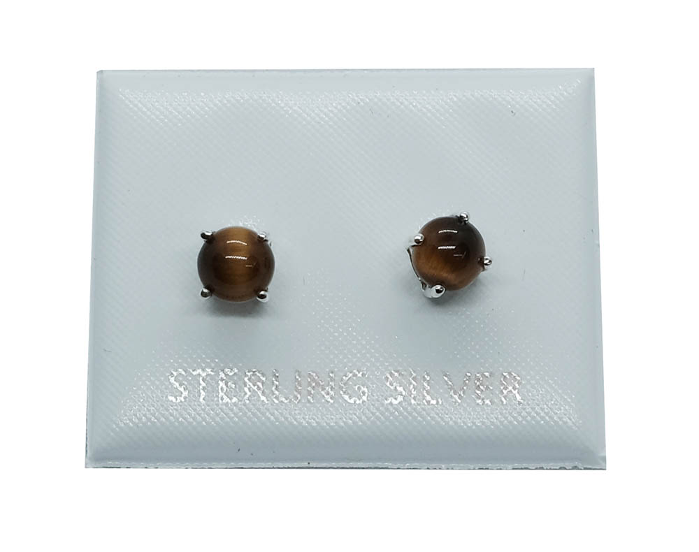 Silver Stud Round Tiger Eye Claw Set 5x5mm