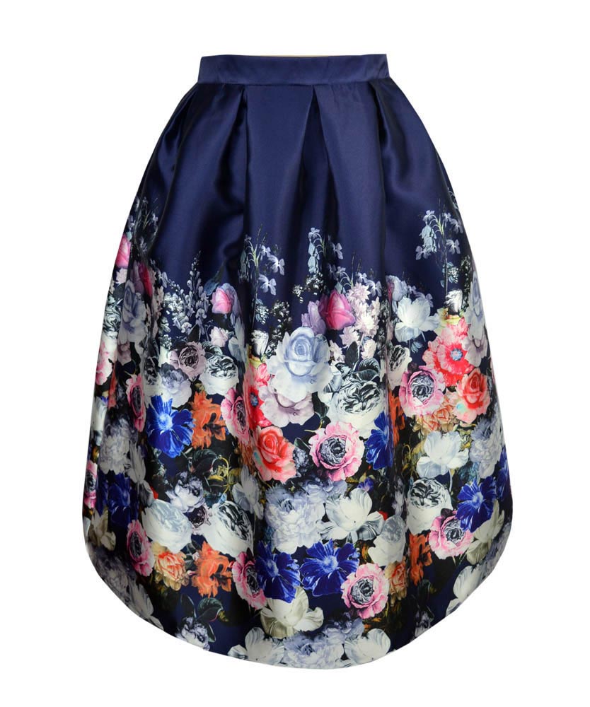 Skirt Short Navy With Multi Colour Floral Print. Poly Silk Retro Rockabilly Style