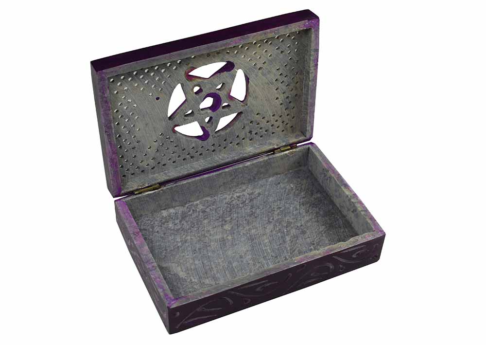 Soapstone Box Triple Moon Pentagram And Moon Purple 6X4X2 Inch