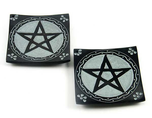Soapstone Incense Plate Pentagram Design Black W4XL4 Inch