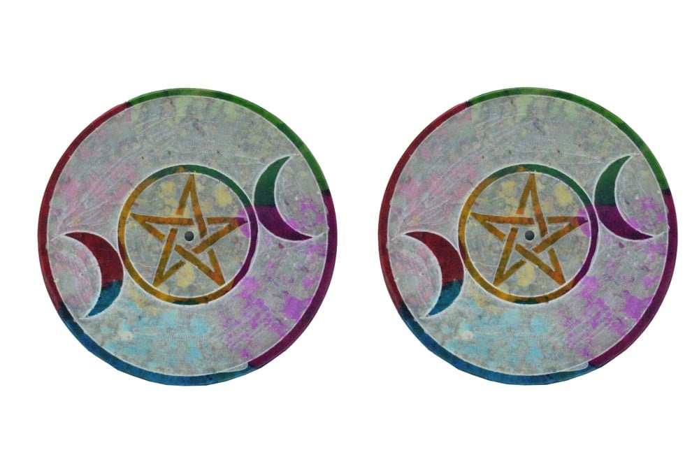 Soapstone Incense Tray Round 3″ with Carved Triple Moon Multi Colour Set of 2