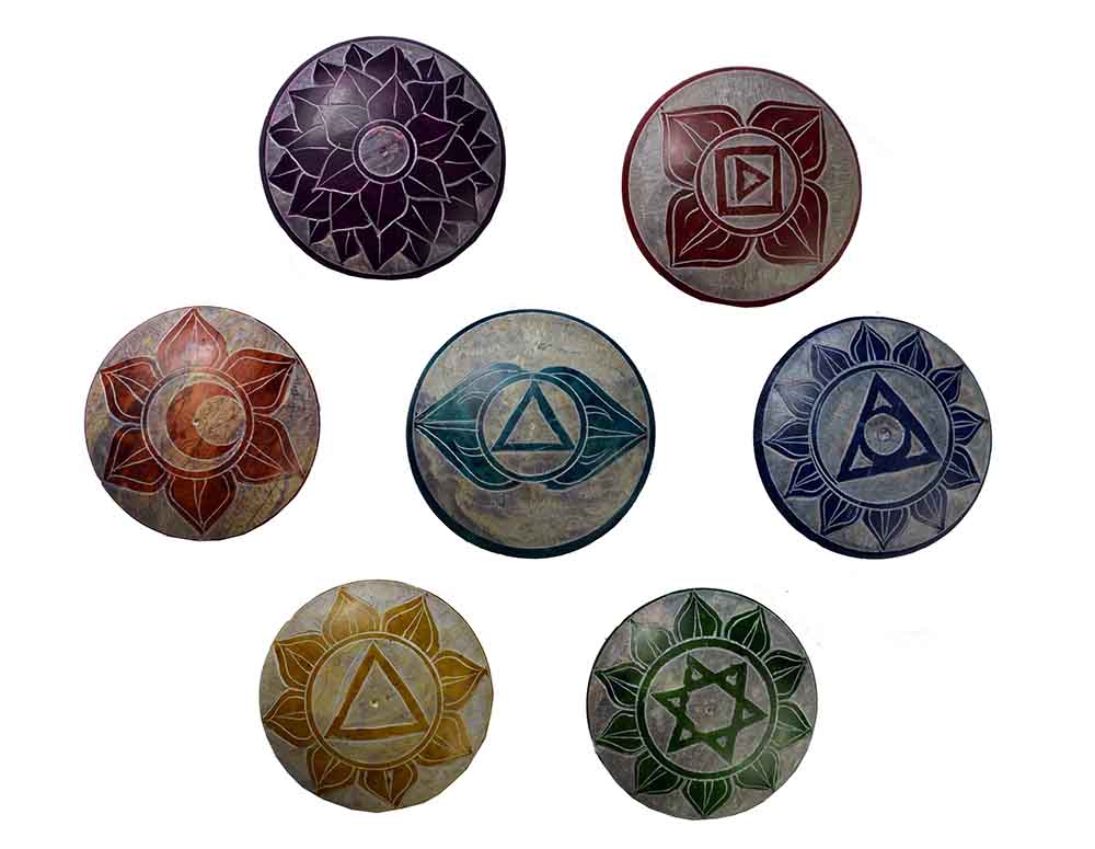 Soapstone Round Pebble 2″ Carved With 7 Chakra Colours 7 in a box