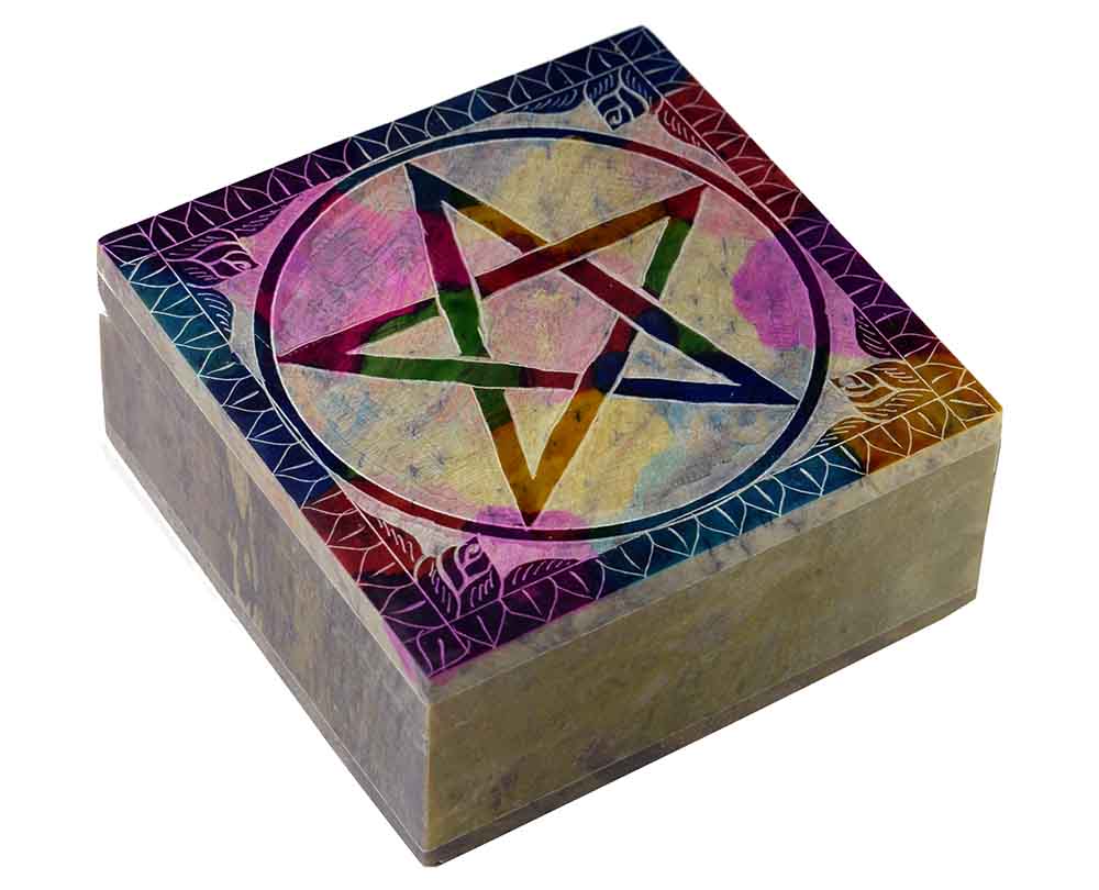 Soapstone Square Box 4×4″ With Carved Pentagram Multicolour