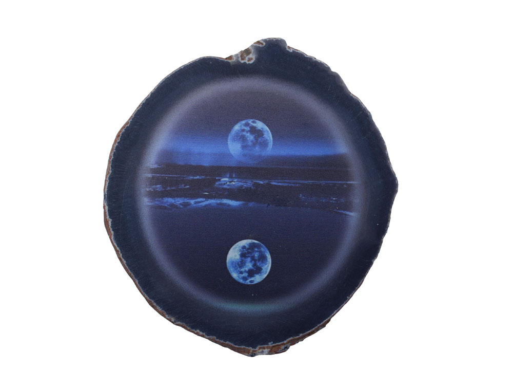 Stone Painted Agate Slice 10-12cm Full Moon