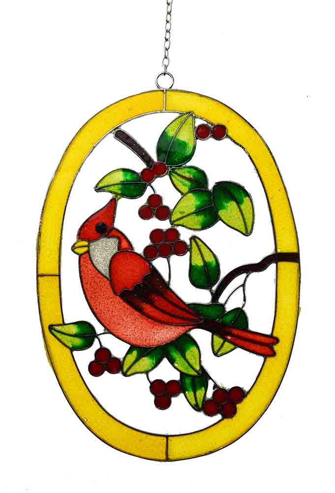 Sun Catcher Robin Sat On Red Berry Branch With Sucker For Window 14X1X27.5cm