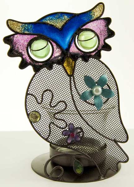T-Light Holder Owl Mesh With Beads Metal 10X8X13cm