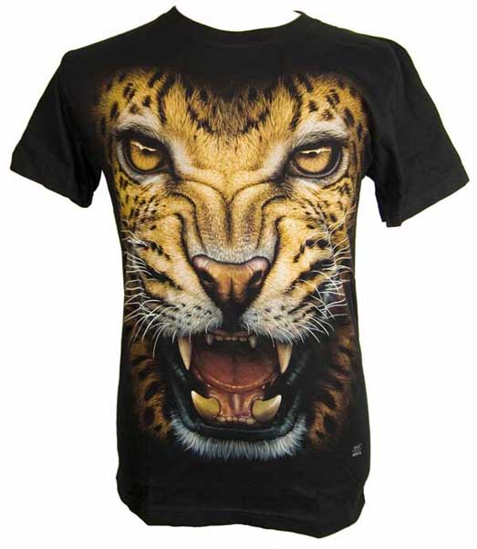 T-Shirt Medium Black With Colourful Leopard Face On The Front