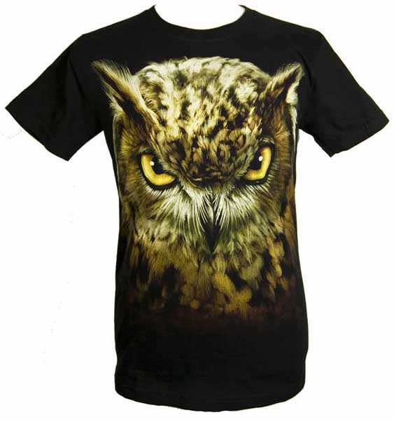 T-Shirt Medium Black With Colourful Owl On The Front