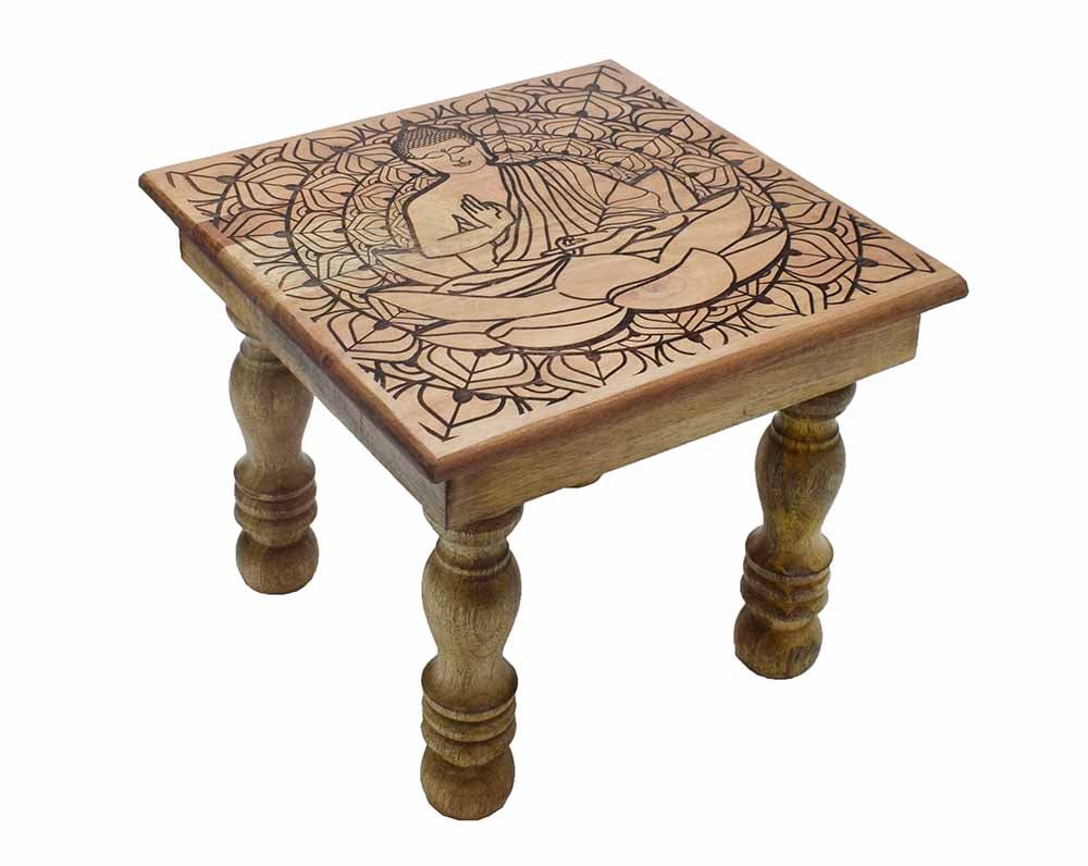 Table Mango Wood Buddha Lotus H25cm x W30cm