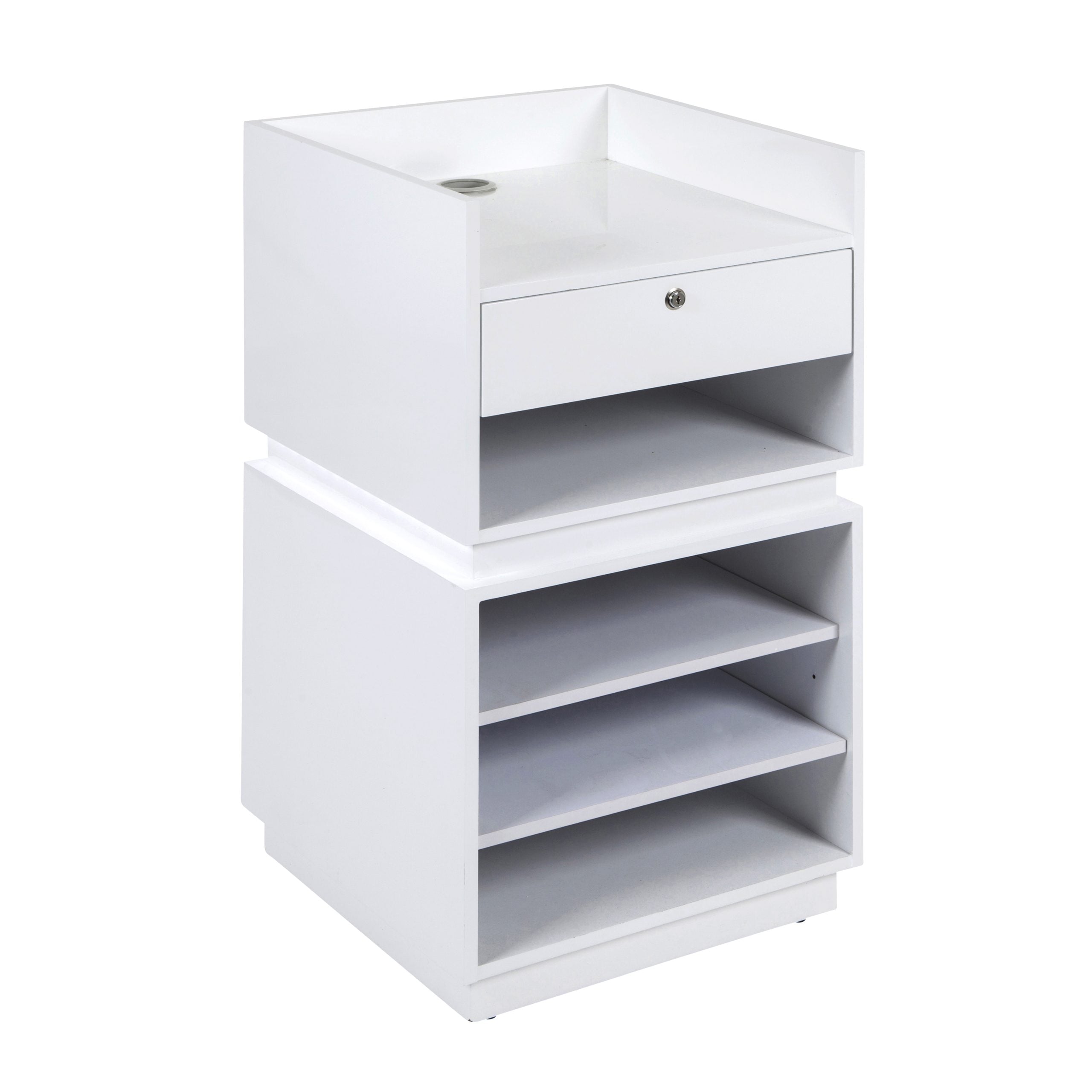Cabinet 600X600X1050mm Till Counter High Quality Glossy White Painted Finish With One Drawer And Adjustable Shelf. Lights Fitted In The Groove.