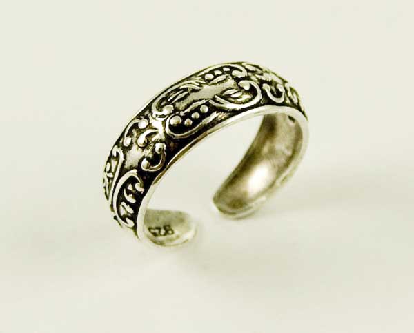 Toe Ring Silver Band Fancy Design W0.5cm